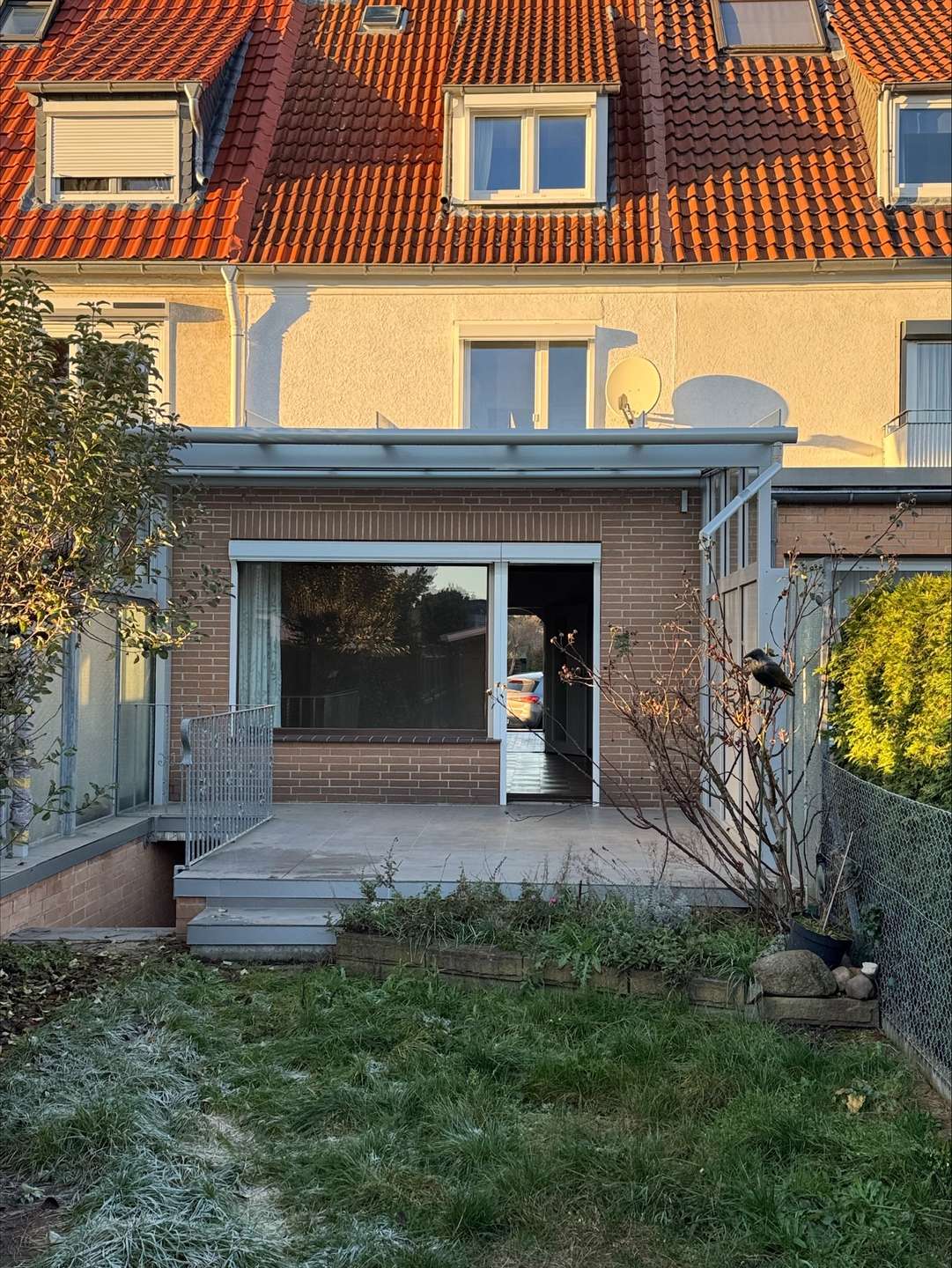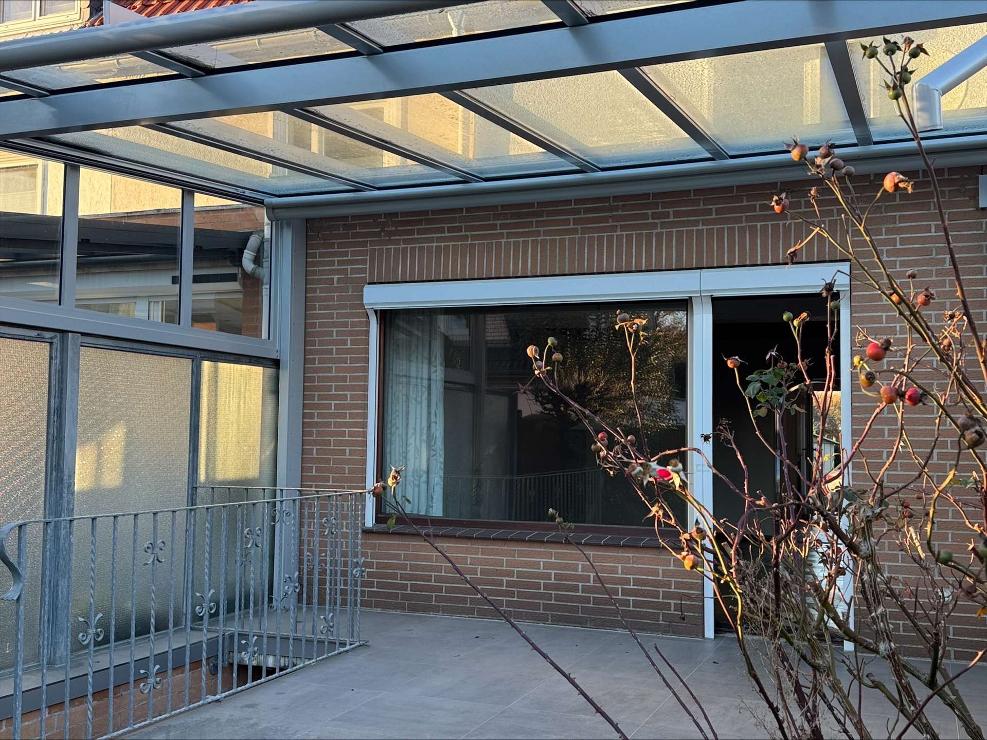 Im Sommer erweitert sich das Wohnzimmer über die Südterrasse, bis in den Garten. Die Südterrasse wurde vor nicht langer Zeit mit einem modernen Glasdach überdacht, sodass Sie die Terrasse und den Garten auch bei weniger schönen Tagen ganzjährig nutzen können. Was für viel zusätzliche Lebensqualität sorgt.