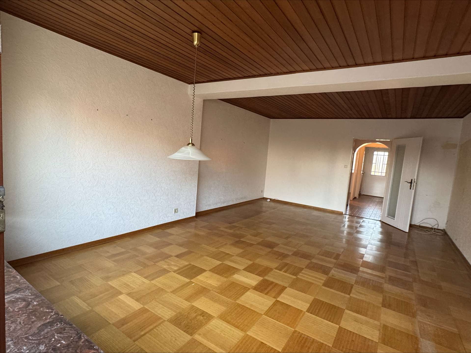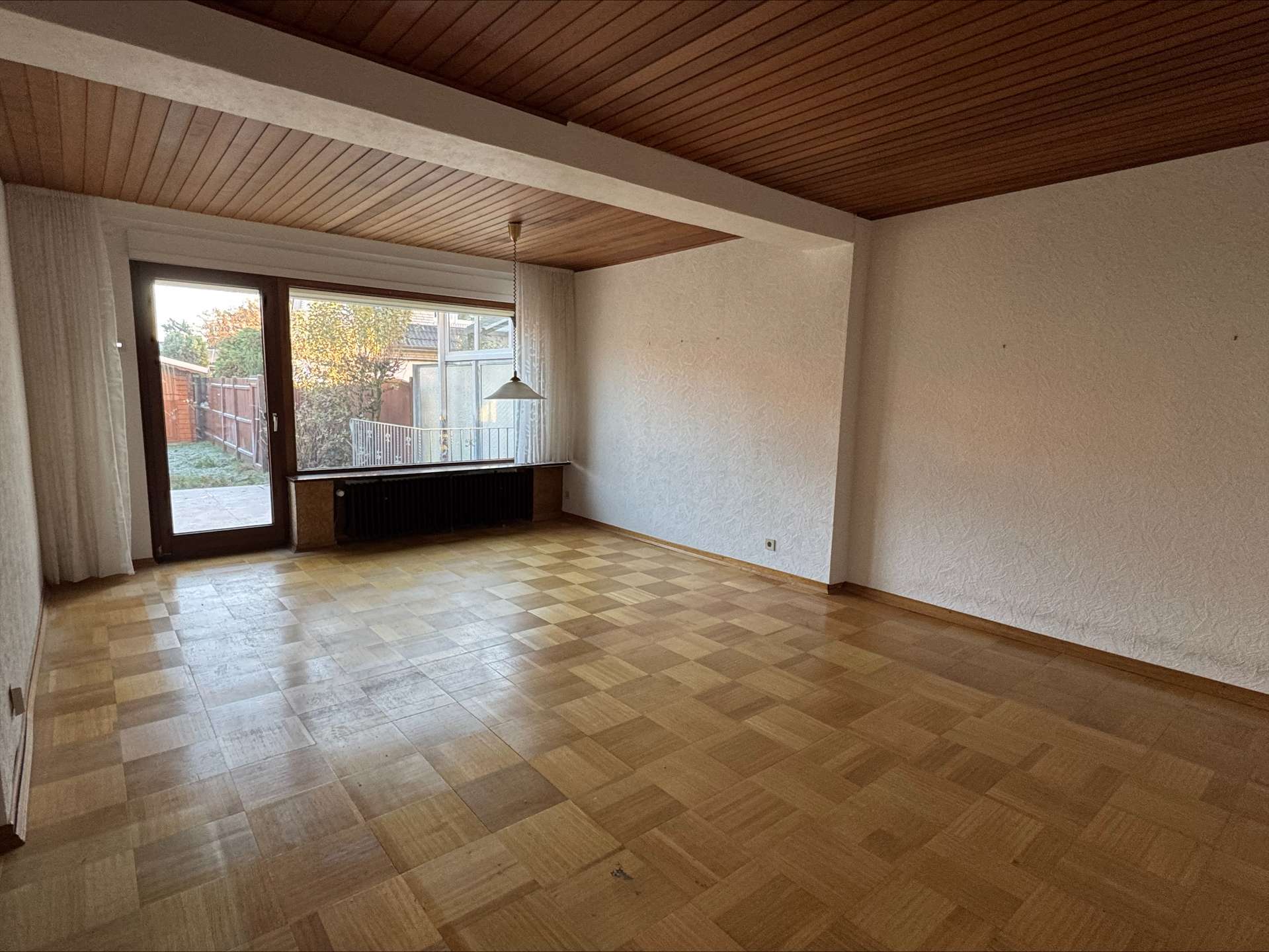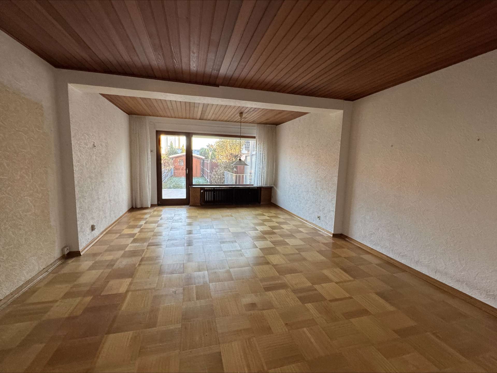 Das Herzstück des Hauses ist das Wohn-/Esszimmer, welches vor einigen Jahren durch einen Anbau auf eine großzügige Größe gebracht wurde. Das Wohn-/Esszimmer gestaltet sich durch die Fensterelemente hell und freundlich. Durch den klassischen rechteckigen Grundriss sind Ihren gestalterischen Ideen keine Grenzen gesetzt.