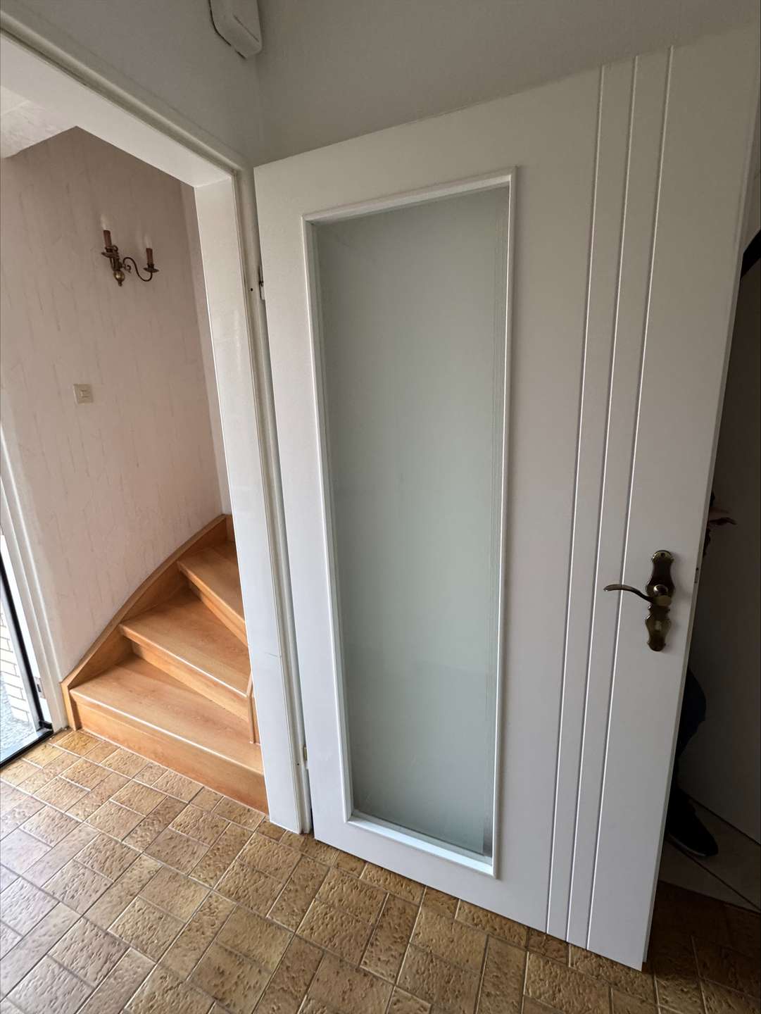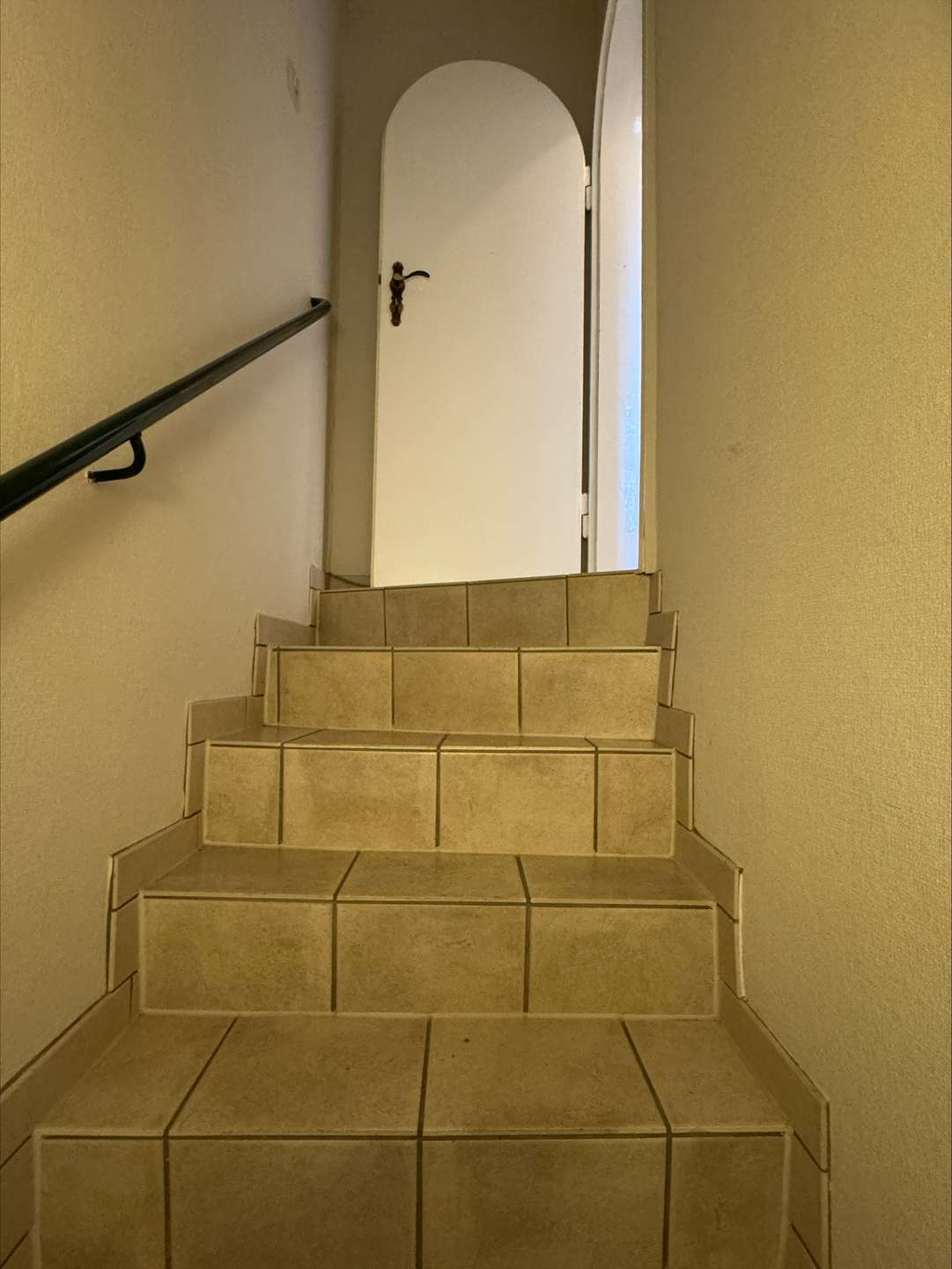 • Massive Treppe mit Fliesenbelag zum Kellergeschoss