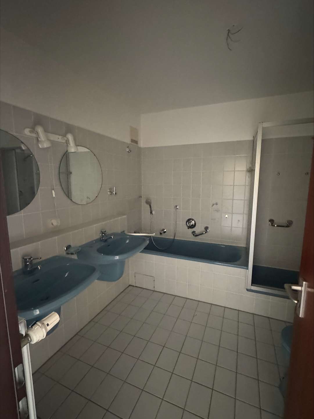 Das Badezimmer befindet sich noch im Baujahreszustand, verfügt aber über eine sehr gute Größe. Neben einem Doppelwaschtisch, einer Badewanne, einer Dusche und einem WC findet auch noch Ihre Waschmaschine ihren Stellplatz.