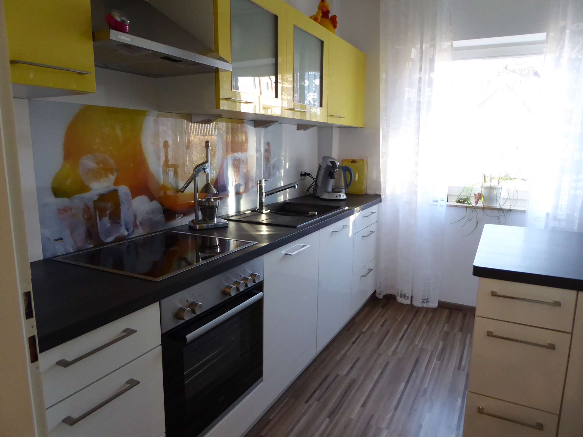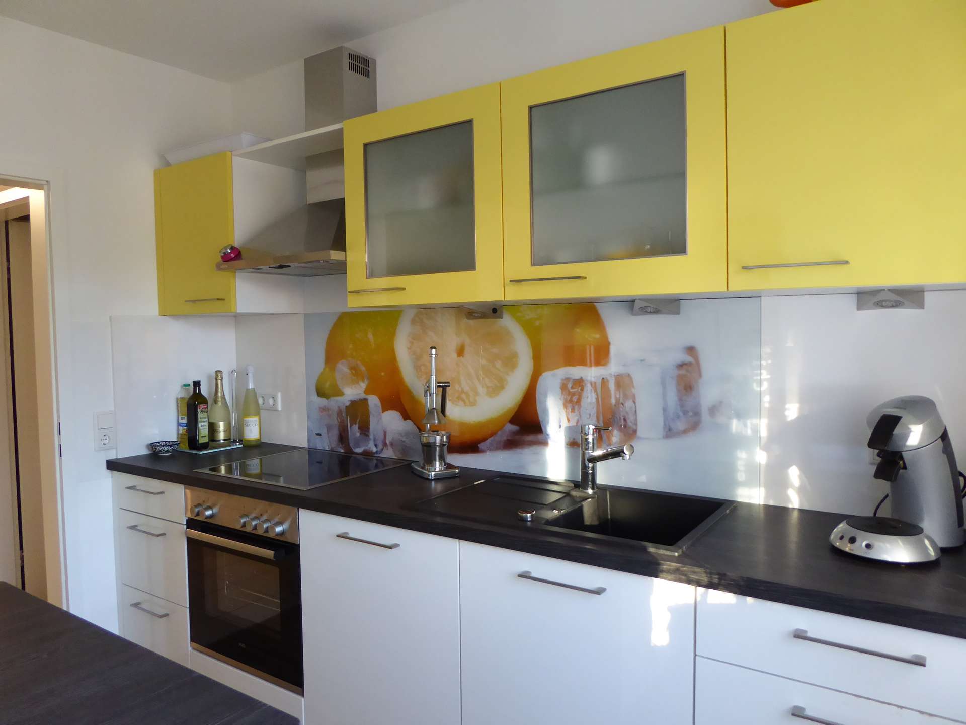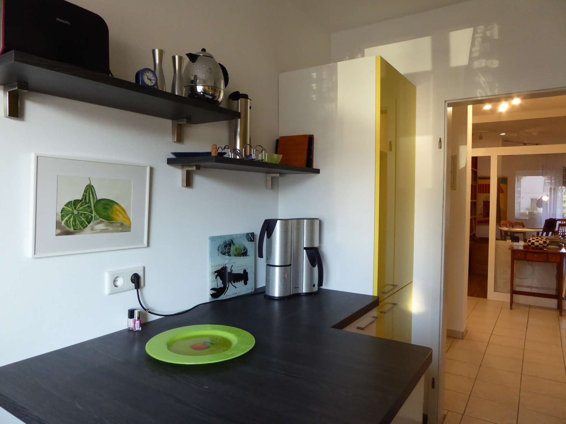 – Küche mit Einbauküchenmöbeln und allen elektrischen Geräten