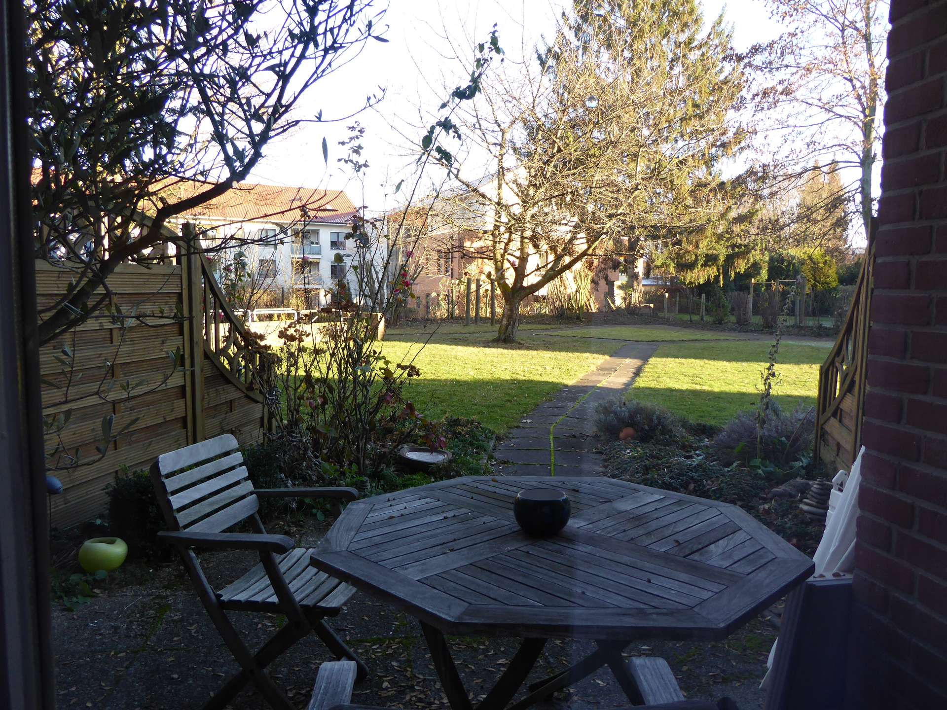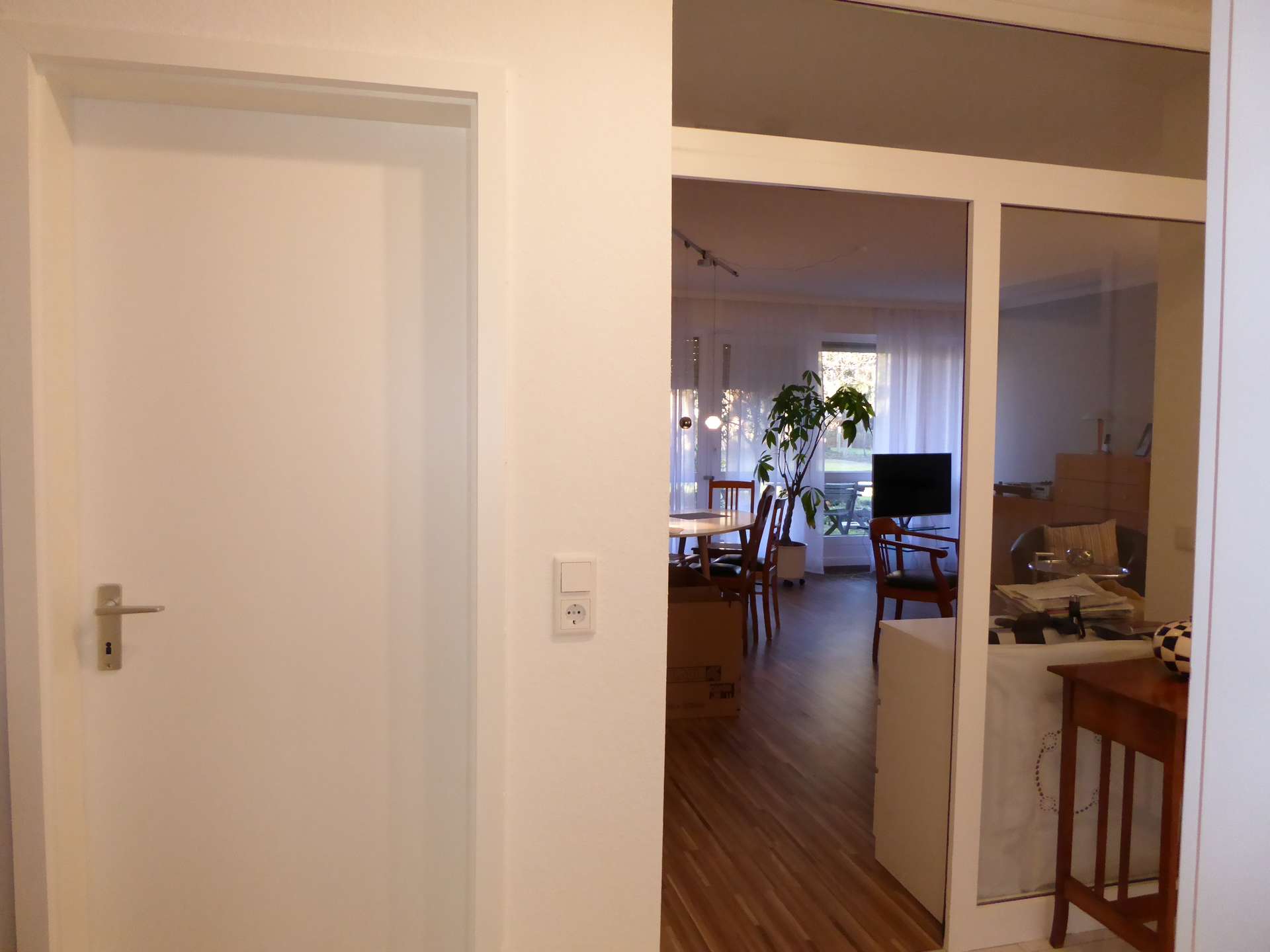 Beim Betreten der Wohnung gelangen Sie in die gut proportionierte Diele, von welcher sich sämtliche Räumlichkeiten der Wohnung erschließen. Gleich neben dem Wohnungseingang befindet sich ein Gäste-WC. Ein Glaselement trennt das Wohnzimmer vom Flur, wodurch dieser optisch erweitert wird. Ein einheitlicher Design-Vinylbodenbelag im Flur, dem Wohnzimmer, dem Schlafzimmer und dem Gäste- oder Kinderzimmer unterstreicht die hochwertige Ausstattung. Im Wohn-/Esszimmer sind ausreichend Stellmöglichkeiten vorhanden, sodass Sie sich hier ideal nach Belieben einrichten können. Durch die großen Fensterfronten verbindet sich der Wohnbereich mit der angrenzenden Terrasse und dem schön angelegten Garten. Die Terrasse garantiert Ihnen durch die Überdachung viel zusätzliche Lebensqualität. Hier finden Sie einen wunderbareren Ort zur Entspannung. Die Küche ist mit einer modernen Einbauküche und allen elektrischen Geräten ausgestattet. Ein rechteckig geschnittener Schlafraum bietet ausreichend Stellflächen auch für einen größeren Kleiderschrank und Kommoden. Das Gäste- oder Kinderzimmer kann auch ideal als HomeOffice genutzt werden. Das Wannenbad verfügt über kein Tageslicht, aber die Belüftungsanlage ist ausreichend. Es wurde bereits saniert und verfügt über eine Badewanne mit Duschabtrennung. Die weißen Fliesen sind zeitlos. Ein Abstellschrank für Garderobe, Schuhe oder den Staubsauger rundet das Wohnangebot ab.
